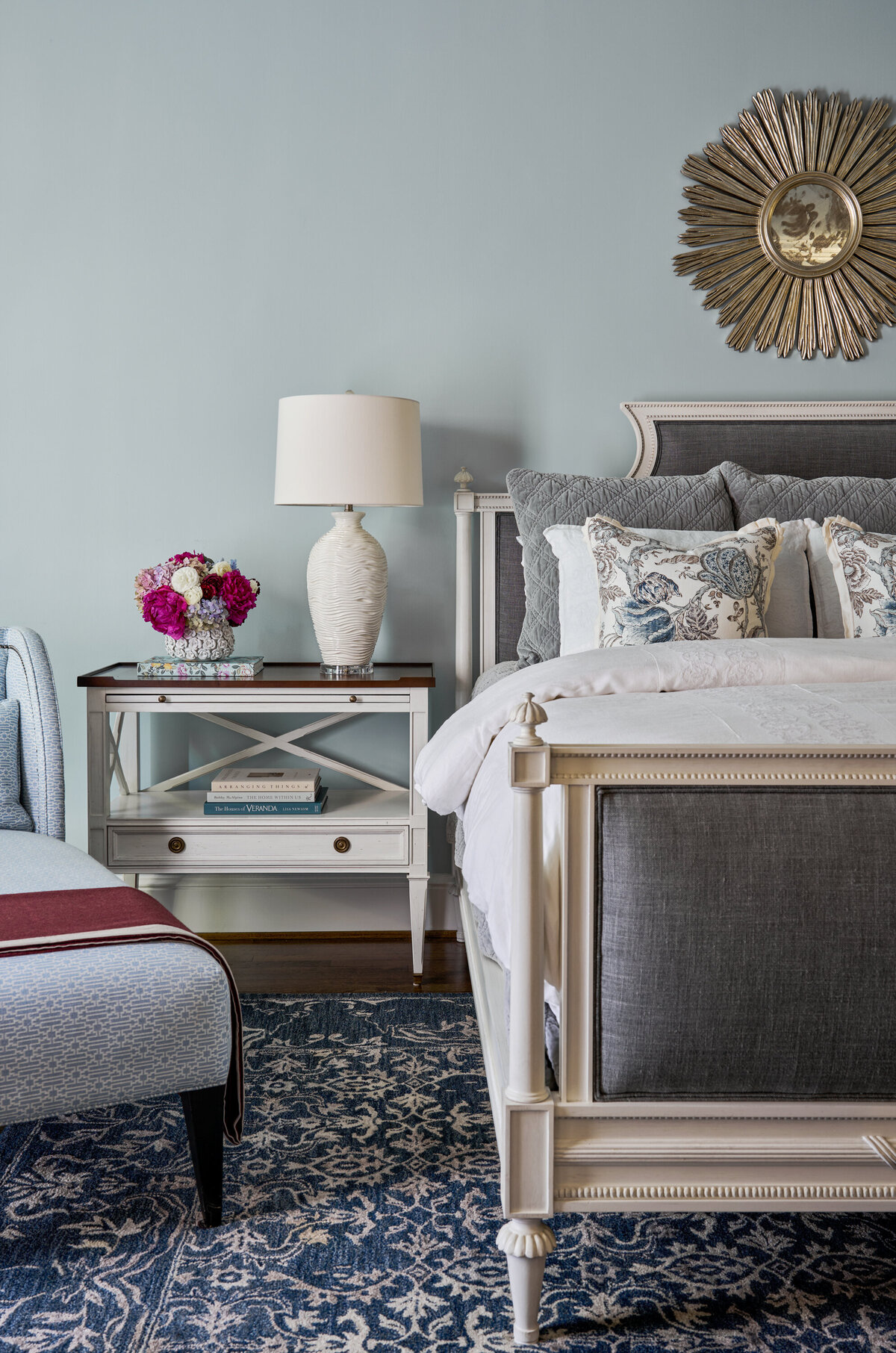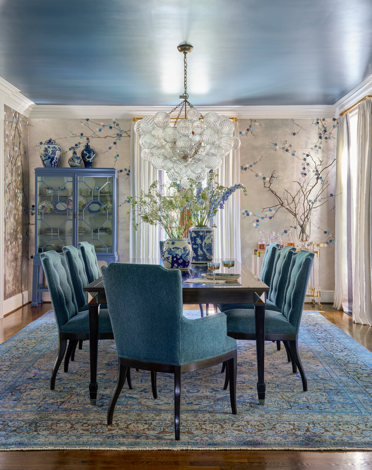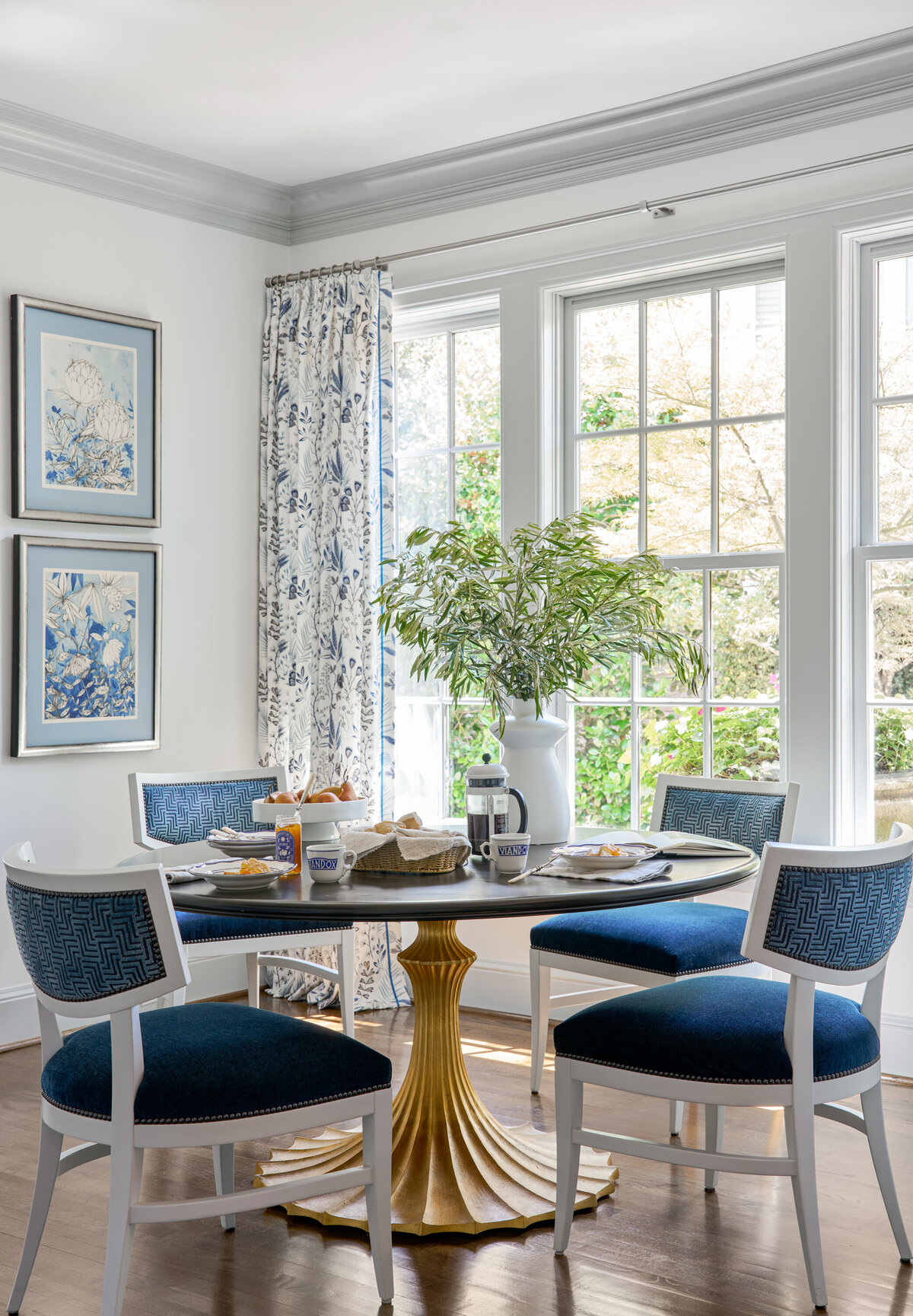 Situated on one of the most beautiful streets in Greenville, South Carolina, this c.1930 residence, originally designed by architect William Ward, offered the perfect canvas for a fresh take on traditional design. Guided by the home’s classic exterior with French influences, the interiors embrace an elegant yet livable style, dressed in a palette of regal blues and purples accented with silver and gold. Designed for a young family, the spaces balance sophistication with functionality, creating rooms that are equally suited for everyday living and gracious entertaining. The result is a timeless home that feels both refined and inviting, honoring its historic character while supporting modern life.